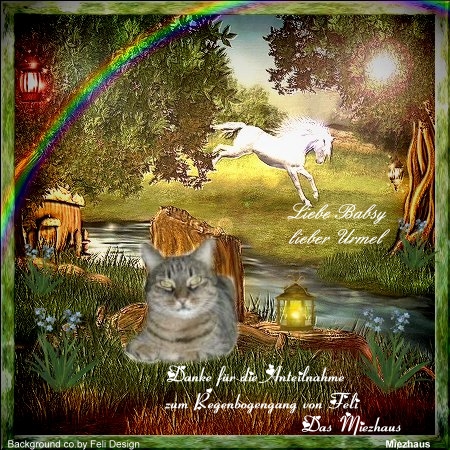Unserer liebe Feli aus dem Miezhaus ist gestern ins Regenbogenland getapst, sie hat leider den Kampf gegen Ihre schlimme Krankheit verloren...