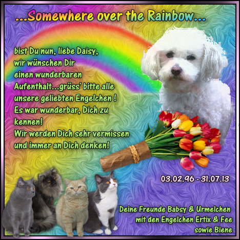 nach 6 Jahren ins Regenbogenland gehen lassen! Es tut uns sehr, sehr leid für Euch, liebe Freunde!
